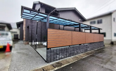 ▶庭まわり敷地の形に合わせた2台用カーポート『エフルージュ』&フェンス設置工事(佐伯市/A様邸)